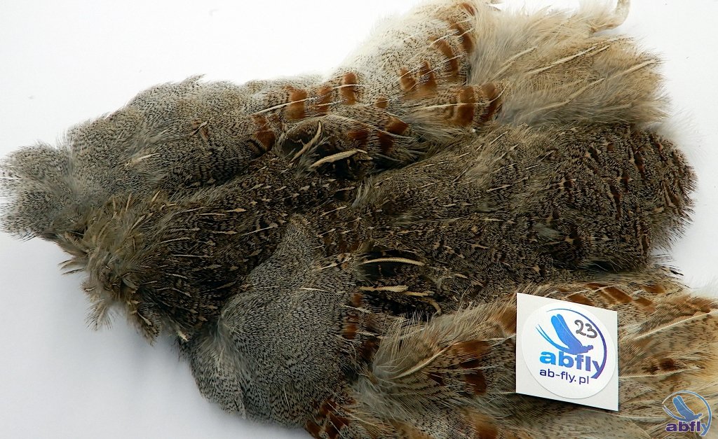 Pióra kuropatwy to bardzo popularny materiał używany do wykonania sztucznych much. Pióra szyjne i grzbietowe wykorzystane mogą być do każdego rodzaju much. Jest to podstawowy materiał dla każdego wiązacza much. Do skóry dołożony komplet skrzydeł kuropatwy.