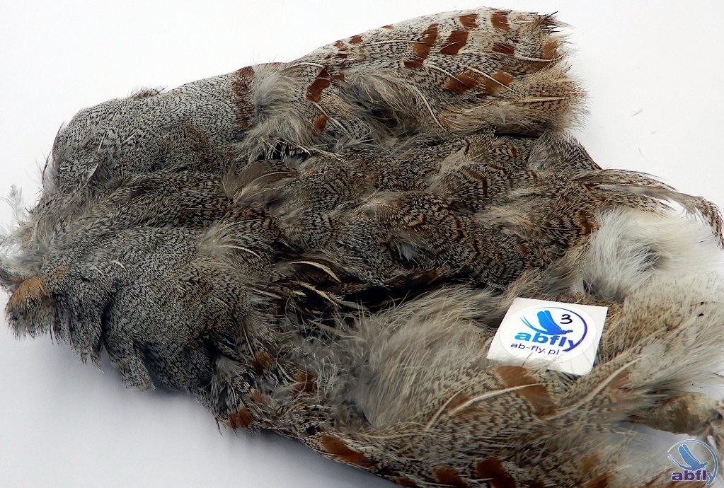 Pióra kuropatwy to bardzo popularny materiał używany do wykonania sztucznych much. Pióra szyjne i grzbietowe wykorzystane mogą być do każdego rodzaju much. Jest to podstawowy materiał dla każdego wiązacza much. Do skóry dołożony komplet skrzydeł kuropatwy.