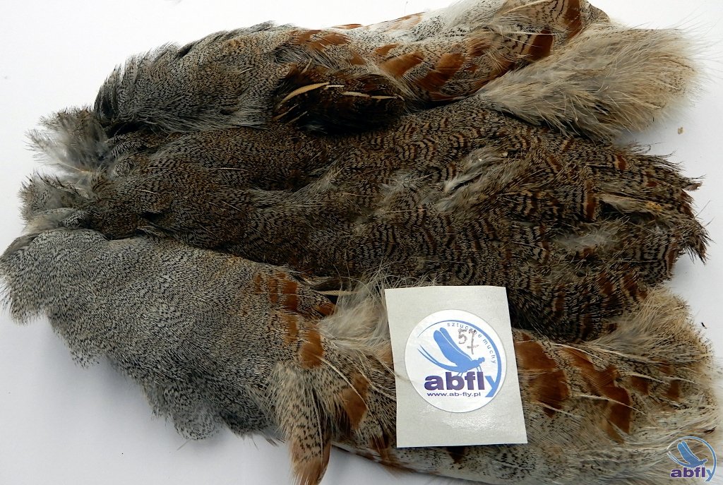 Pióra kuropatwy to bardzo popularny materiał używany do wykonania sztucznych much. Pióra szyjne i grzbietowe wykorzystane mogą być do każdego rodzaju much. Jest to podstawowy materiał dla każdego wiązacza much. Do skóry dołożony komplet skrzydeł kuropatwy.