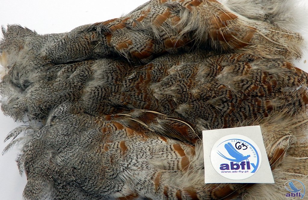 Pióra kuropatwy to bardzo popularny materiał używany do wykonania sztucznych much. Pióra szyjne i grzbietowe wykorzystane mogą być do każdego rodzaju much. Jest to podstawowy materiał dla każdego wiązacza much. Do skóry dołożony komplet skrzydeł kuropatwy.
