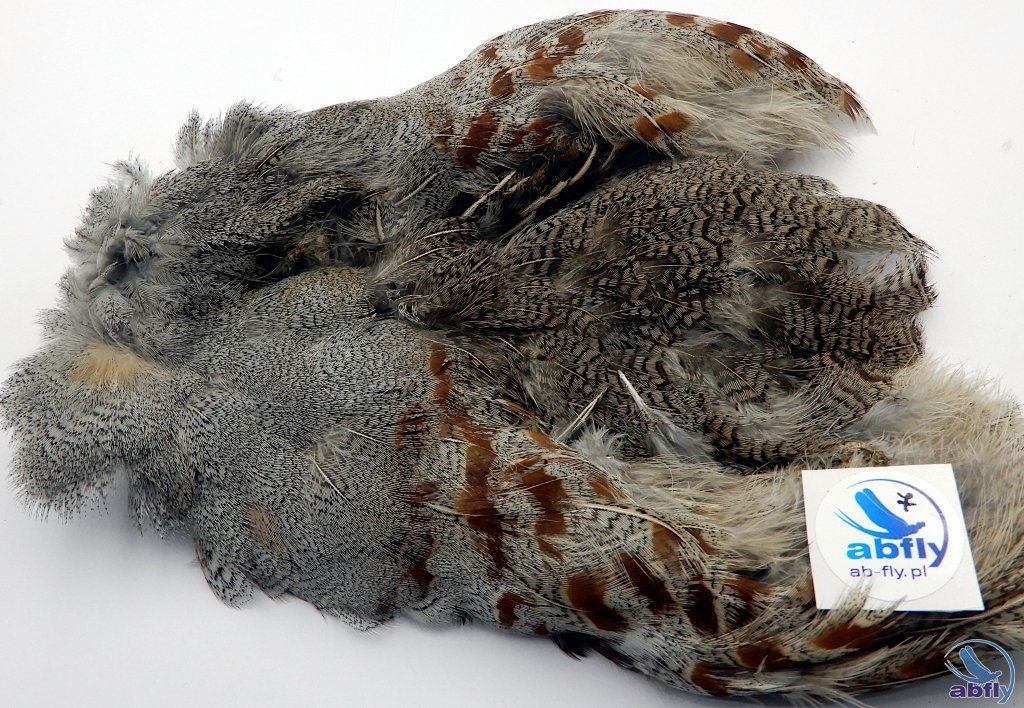 Pióra kuropatwy to bardzo popularny materiał używany do wykonania sztucznych much. Pióra szyjne i grzbietowe wykorzystane mogą być do każdego rodzaju much. Jest to podstawowy materiał dla każdego wiązacza much. Do skóry dołożony komplet skrzydeł kuropatwy.