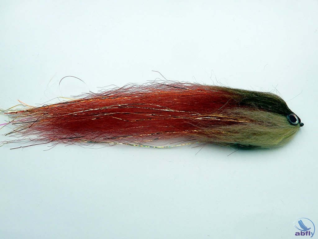 Hak zadziorowy FM350 #5/0, jest to bardzo mocny hak typowo na szczupaka lub głowacicę. Muchy wykonane są z najlepszych materiałów syntetycznych, które znakomicie pracują w wodzie, nie piją wody i są bardzo lekkie i dla tego nie sprawiają problemów przy przerzucaniu muchy. Długość muchy to 18cm.