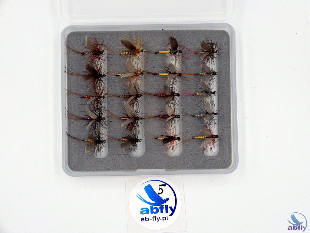 Zestaw suchych much zawiera 20szt. jętek , zrobione na hakach Wizard WD636BL w rozmiarze #14. Super zestaw na wiosenno-letnie łososiowate. Idealny zestaw na prezent dla wędkarza muchowego.